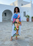 A relaxed artistic kaftan - style shirt dress with a bold modern print.